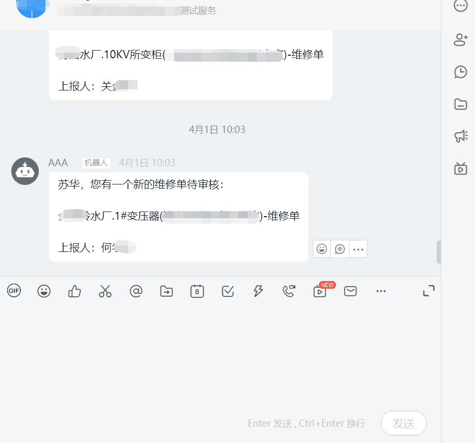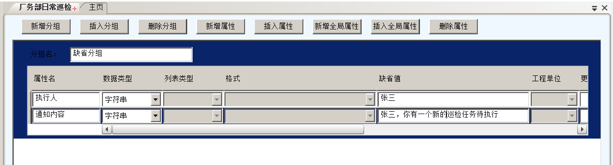 通知内容:字符串类型,缺省值为张三,你有一个新的巡检任务待执行