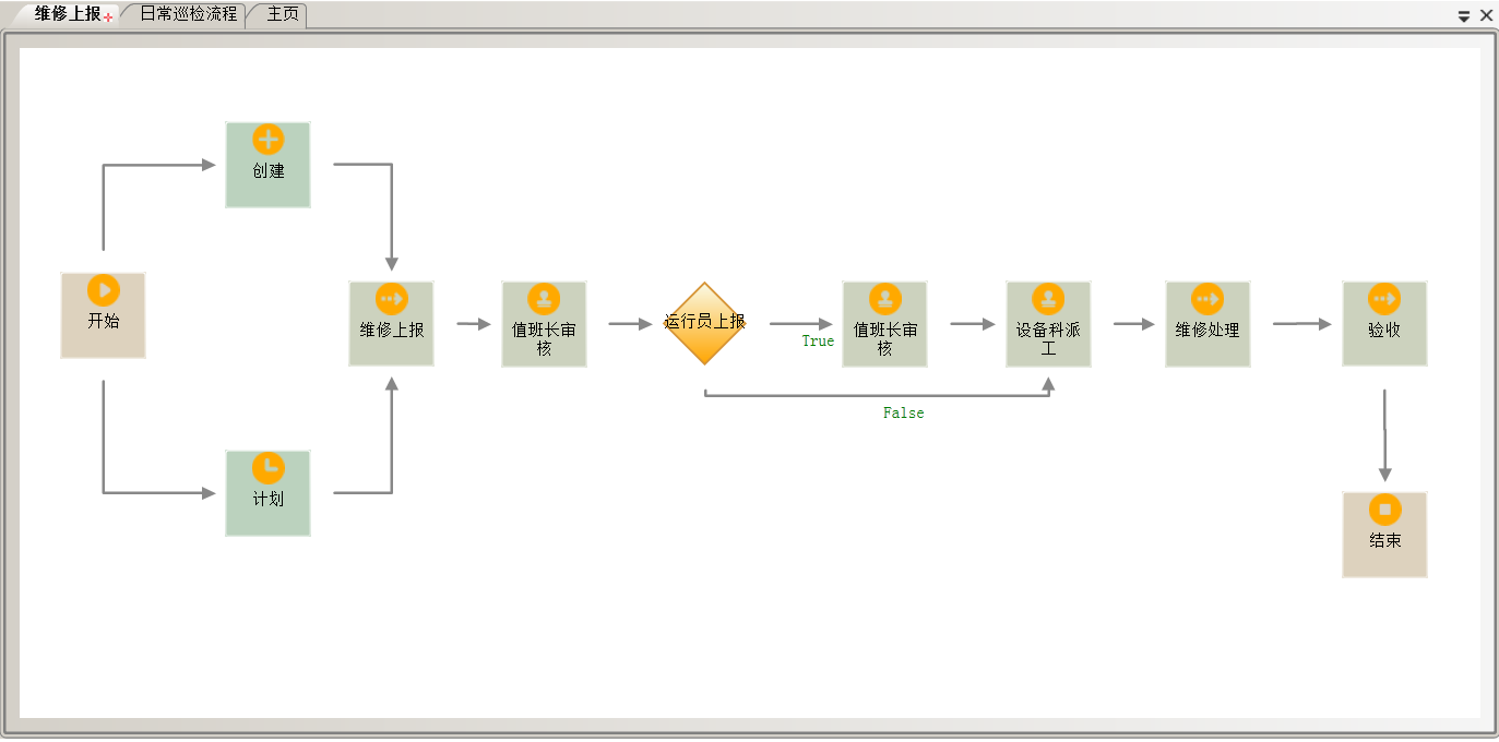 分别创建两个流程:日常巡检流程,维修流程