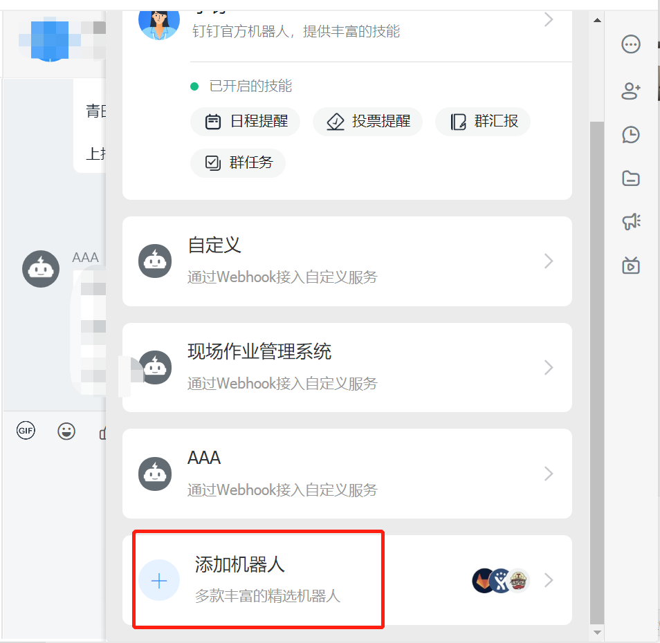 登录钉钉app,进入需要添加机器人的钉钉群,如下图:
