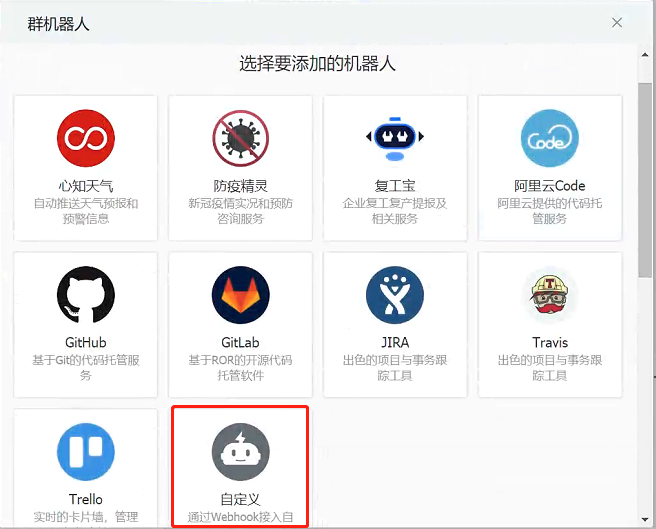 选择机器人“webhook”