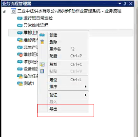 为厂务部日常巡检,废水部日常巡检两个作业组配置同一个流程:日常巡检流程;为维修上报作业组配置维修上报流程。