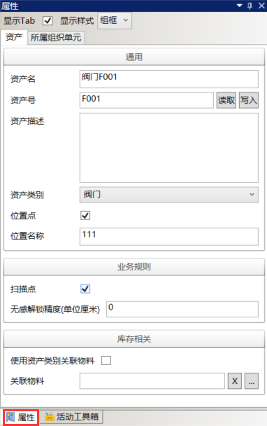 - 位置点:勾选位置点,可将此资产的位置定义为一个系统的位置标记。