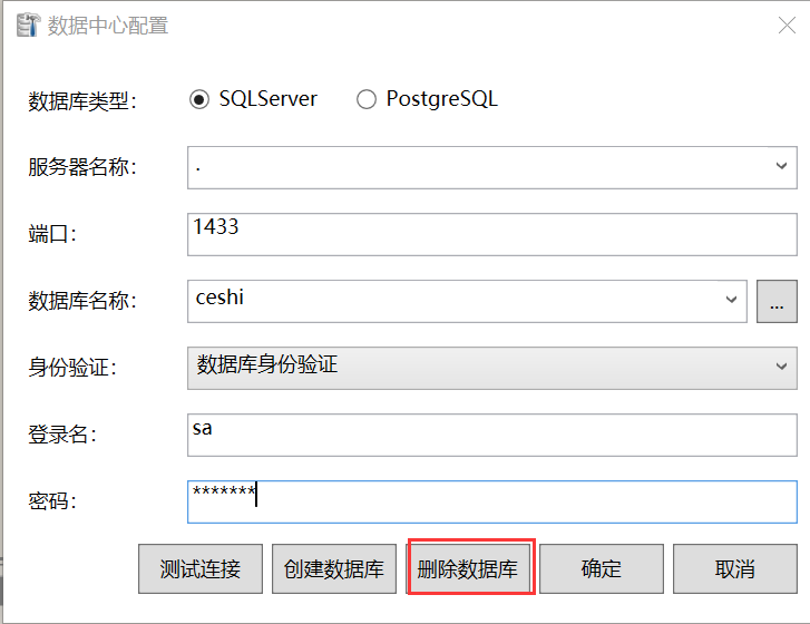 安装之前的说明选择数据库后,如果需要删除,可以点击下图的“删除数据库”按键。