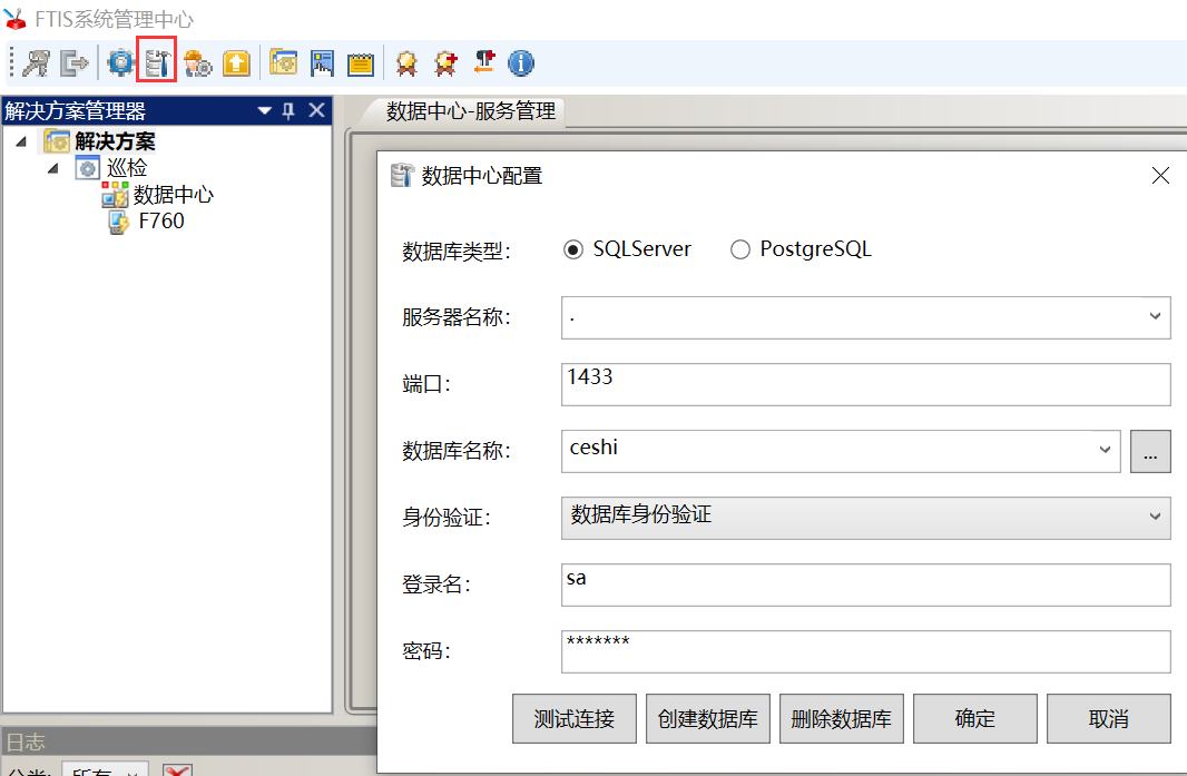 打开开始菜单-FTIS系统管理中心-FTIS数据中心配置