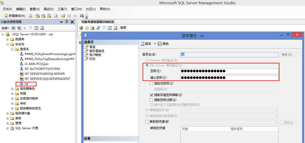 可以如下图用sqlserver management studio工具window身份验证后登陆修改密码。