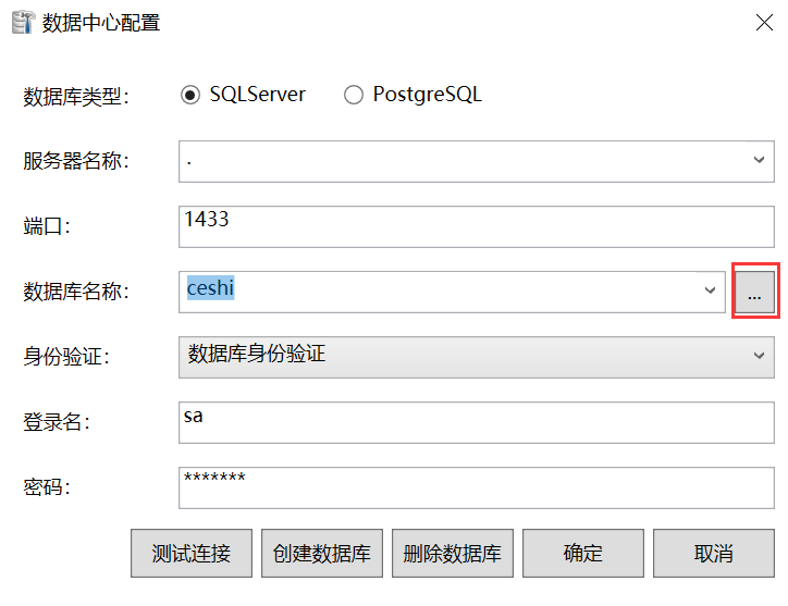 上述设置都ok后,可点击下图所示查询服务器内所有的数据库。选择需要的数据库,测试连接通过后就可以使用该数据库了。