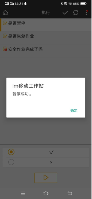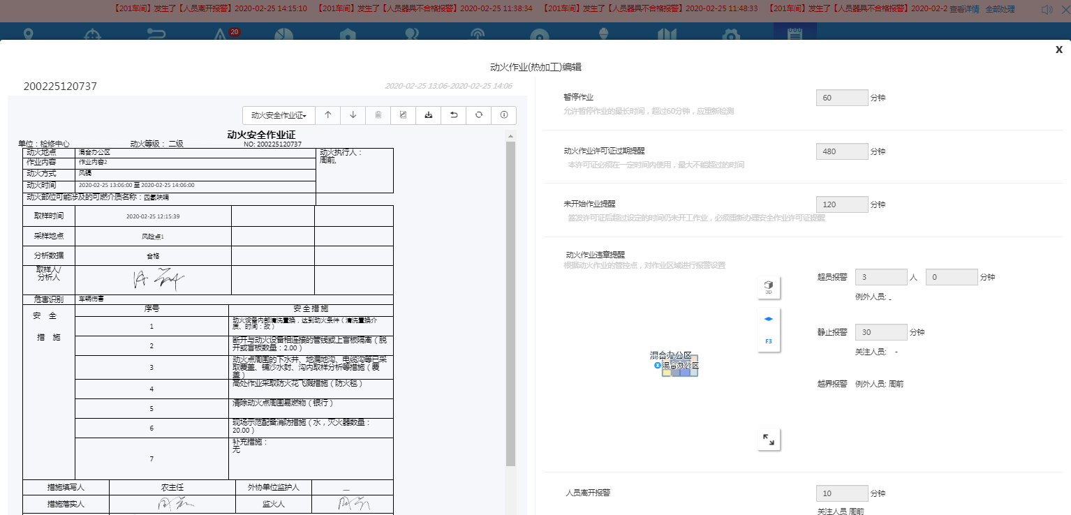 - 动火过程中可能需要暂停工作一段时间,当需要暂停时就可以选择√,系统会将此作业组暂停,报警终止。