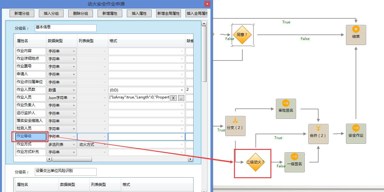 - 申请后审核人员选择字符串列表。影响最终的现场审核,一级动火及以上是非常危险且严格,所以通常要上报总经理级别。