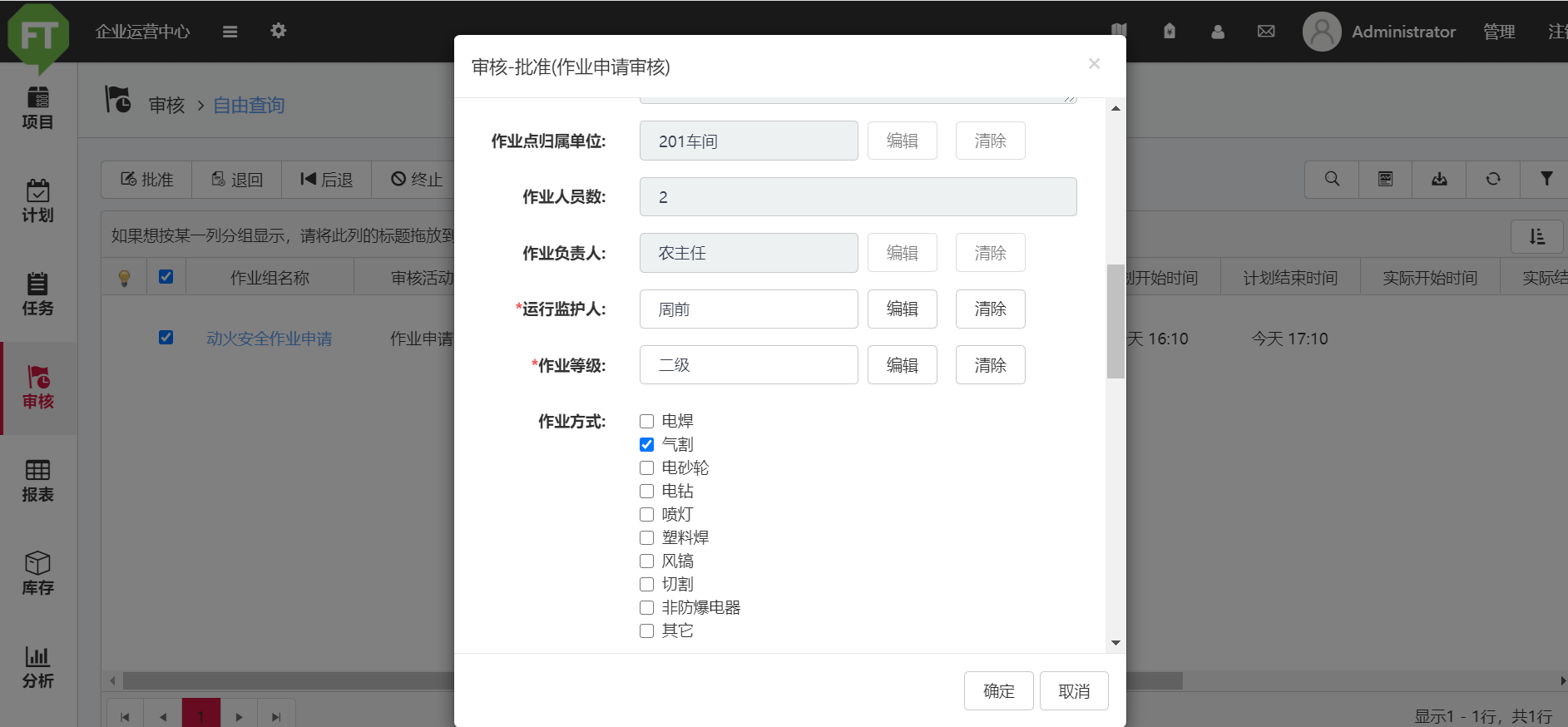 安全作业申请审核