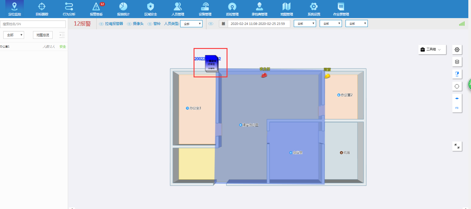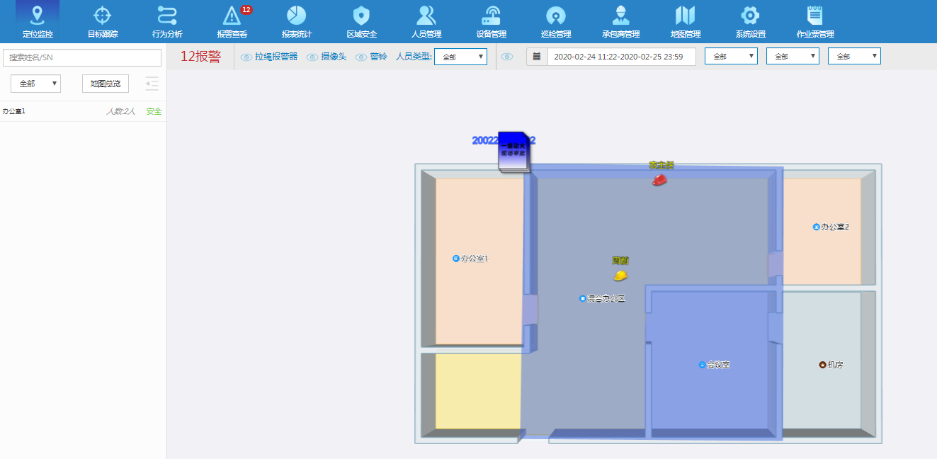 对于监护人员离场,无关人员闯入围栏范围,围栏范围人员过多,作业超时都能及时报警。