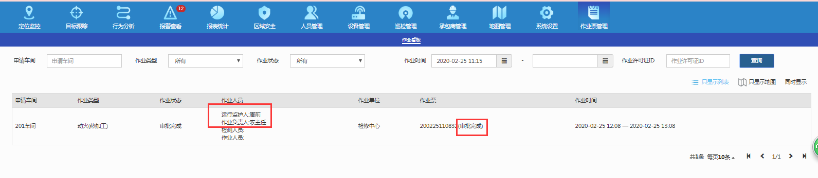 - 安全措施落实人签名* 这里主要就是确定作业人是到围栏范围内落实安全措施了。所以有个查询此人是否在围栏范围的脚本。
