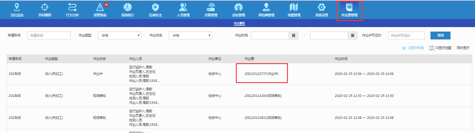 - 重复创建此规范,可扫描多次动火人员。将作业人员信息更新到作业组属性多组报警中。