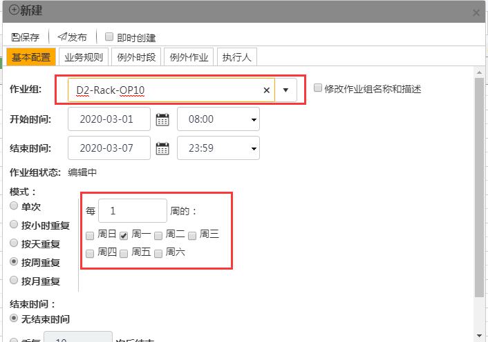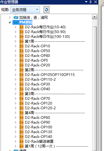- 我们以D2-Rack-OP10作业组为例。计划重复周期为每周一次,但不是所有作业都是每周一次,有些作业是在每年的第1,5,9,13,17,21,25,29,33,37,41,45,49周执行。那就需要用到下面的脚本。