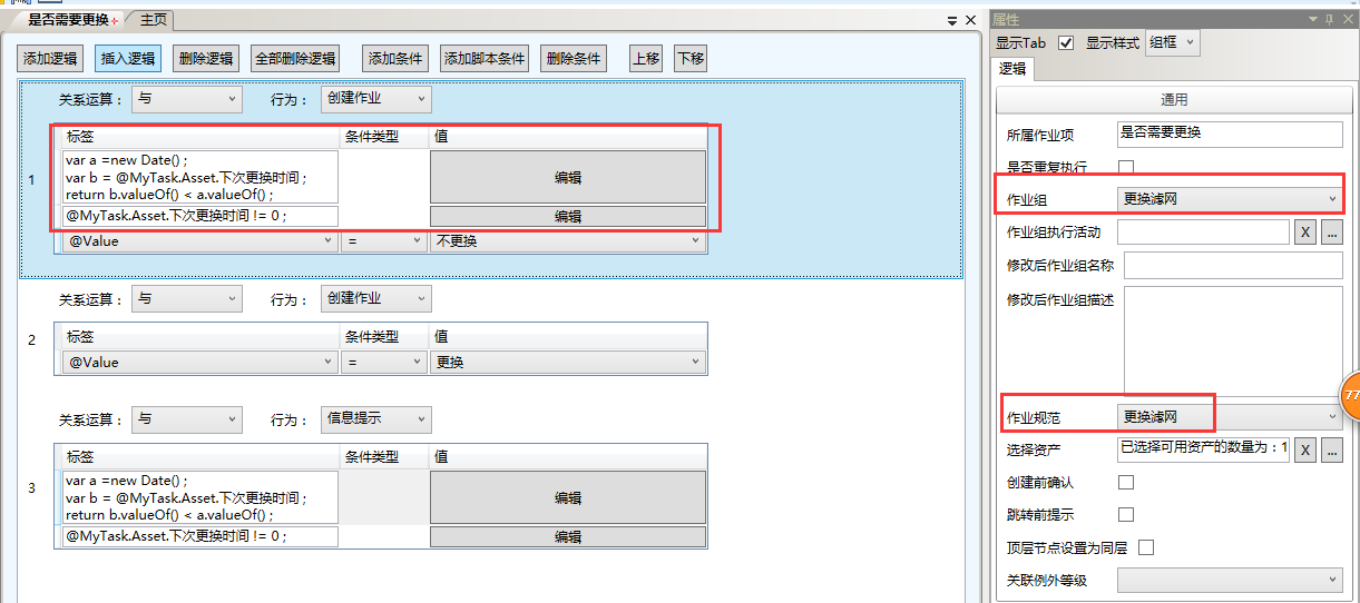 那这两个任务也是由流程后函数产生的,根据作业组属性验定资产信息创建任务。