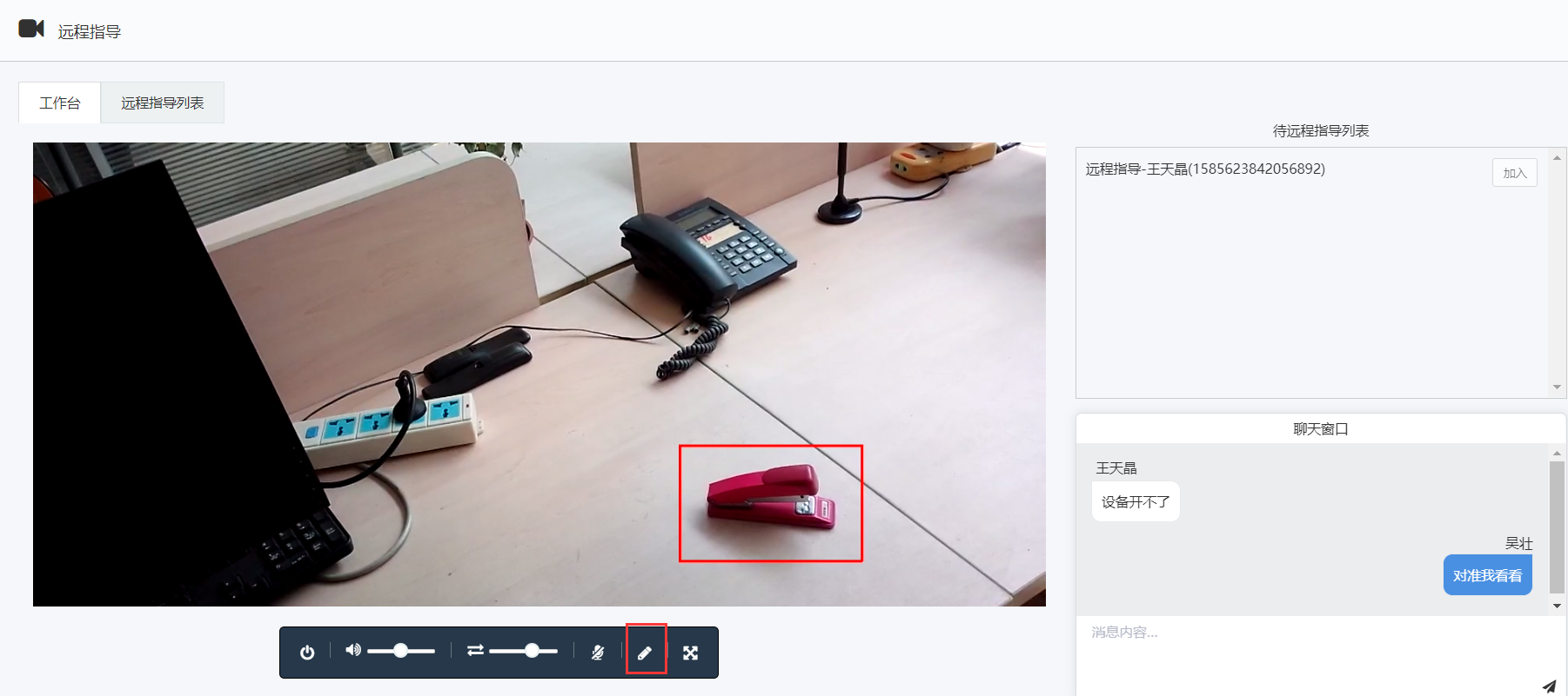 • 后台专家登录EOC后点击图示按钮进入远程指导页面