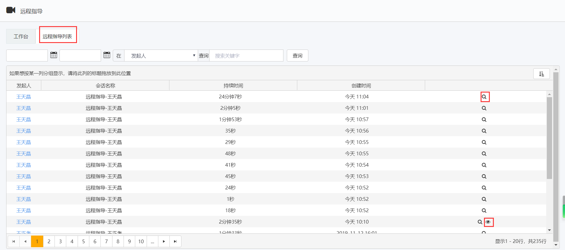 • 点击放大镜按钮,进入查看详细会话,查看远程指导视频和文字记录