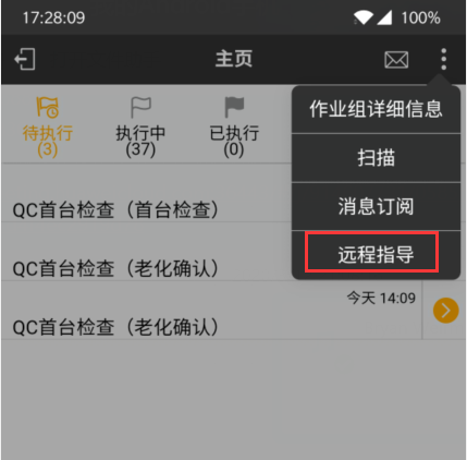 注意,作业组执行中发起时,此次远程指导将绑定当前作业组。