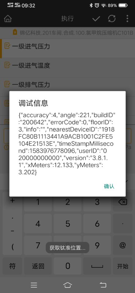 ## 终端APP使用V3.8.1的imMW_TZPlugin.apk 将终端调试信息打开,终端弹出图中框。执行完成后会看到每个作业的钛准坐标。